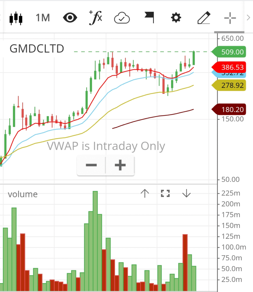 GMDC has made both monthly,weekly and daily changes after a long consolidation period of 1 year and 9 months. It rose 12%, making all time high of 509. It can make gains of almost 250-300 rs as it made range low of 250 and Range high of 500.